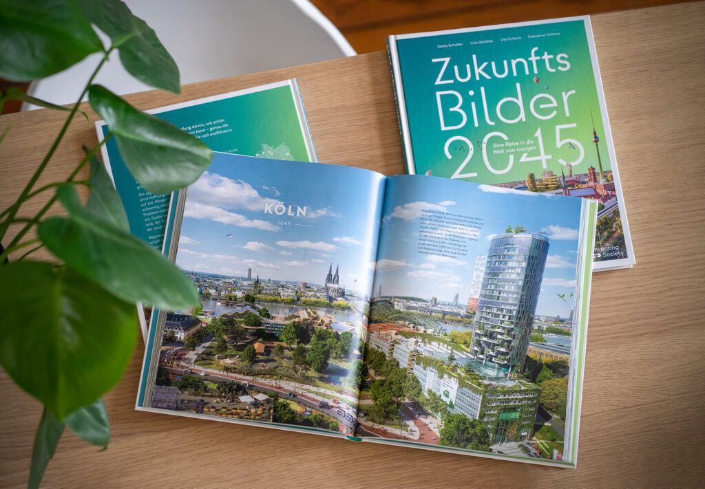 Das Buch Zukunftsbilder 2045 macht positive Zukunftsszenarien sichtbar. Konzipiert und herausgegeben von Reinventing Society, vereint es Texte, Recherche und realutopische Visualisierungen verschiedener Kreativteams. Auch wir von loomn / Zukunfts-Perspektiven haben das Projekt mit ausgewählten Grafiken unterstützt und so dazu beigetragen, komplexe Zukunftsideen anschaulich und greifbar zu machen.