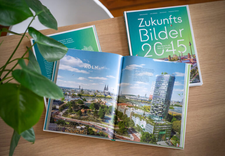 Das Buch Zukunftsbilder 2045 macht positive Zukunftsszenarien sichtbar. Konzipiert und herausgegeben von Reinventing Society, vereint es Texte, Recherche und realutopische Visualisierungen verschiedener Kreativteams. Auch wir von loomn / Zukunfts-Perspektiven haben das Projekt mit ausgewählten Grafiken unterstützt und so dazu beigetragen, komplexe Zukunftsideen anschaulich und greifbar zu machen.